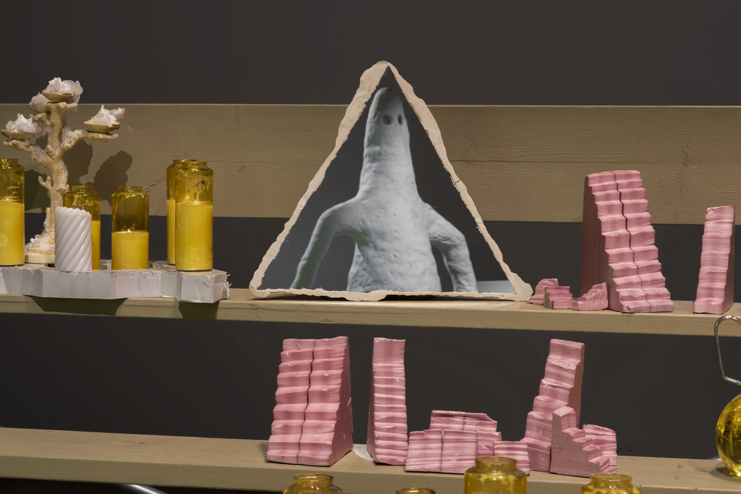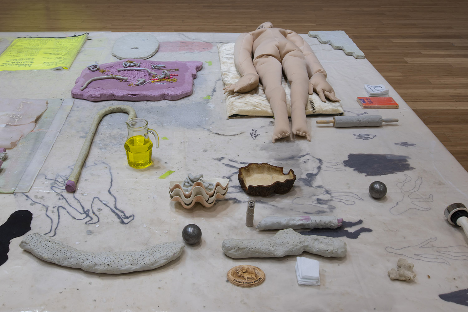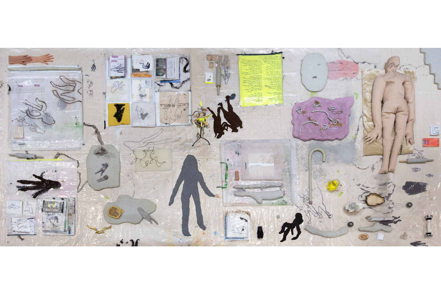 Conçue comme une nouvelle étape de création, l’exposition rassemble et redistribue les éléments constitutifs d’une œuvre en quête de nouveaux langages, de formes et de visions nouvelles dans un monde dévasté. En l’absence des performeurs, ce sont les matériaux qui s’animent et performent au sein d’une installation qui relève tout à la fois du théâtre, du gymnase, de la forêt, de la cathédrale, de l’arche de Noé et, bien sûr, de l’île.