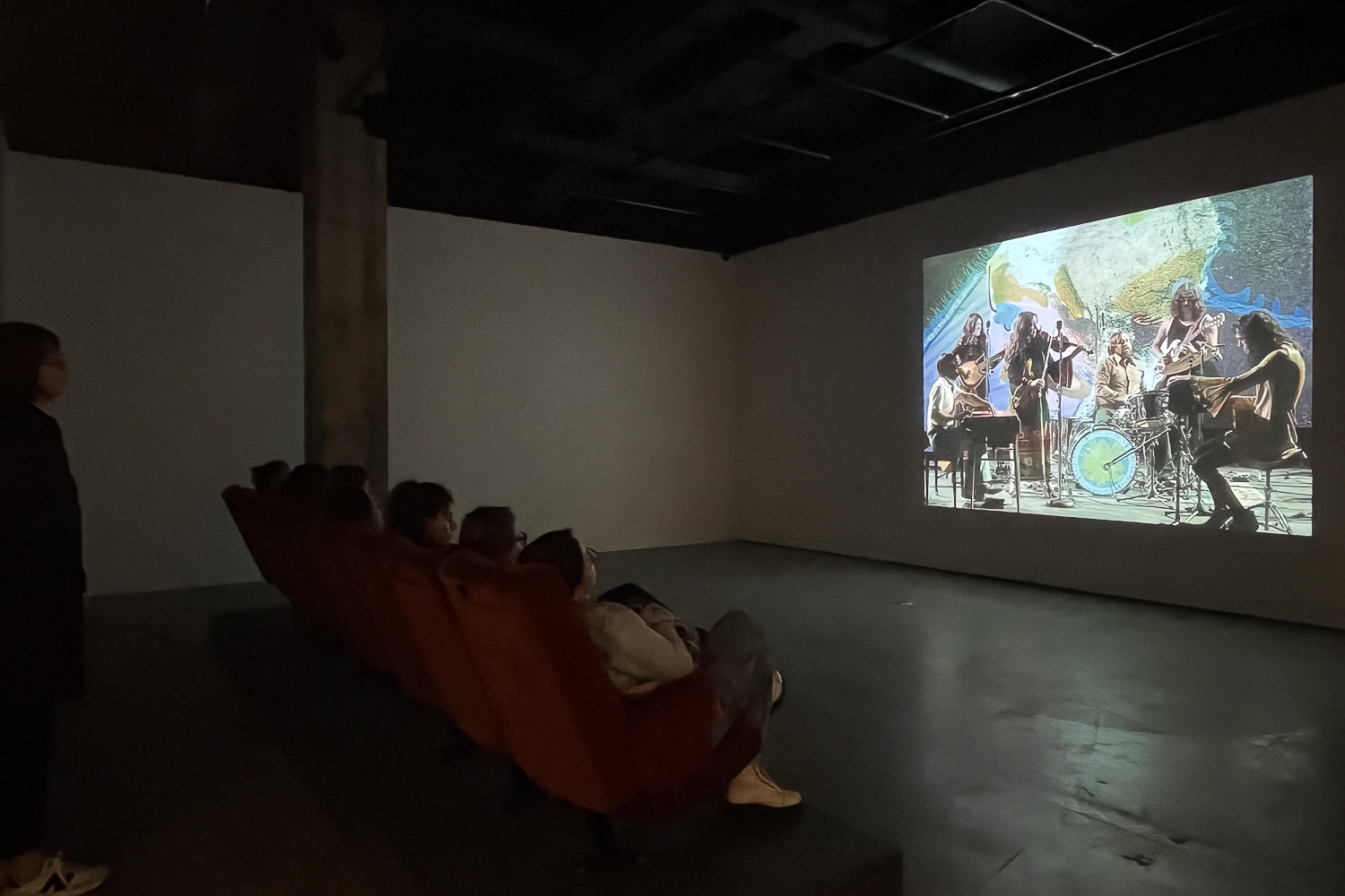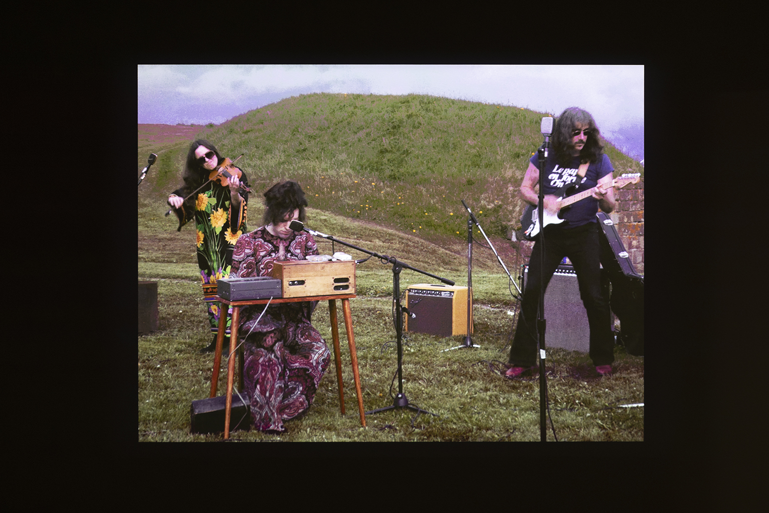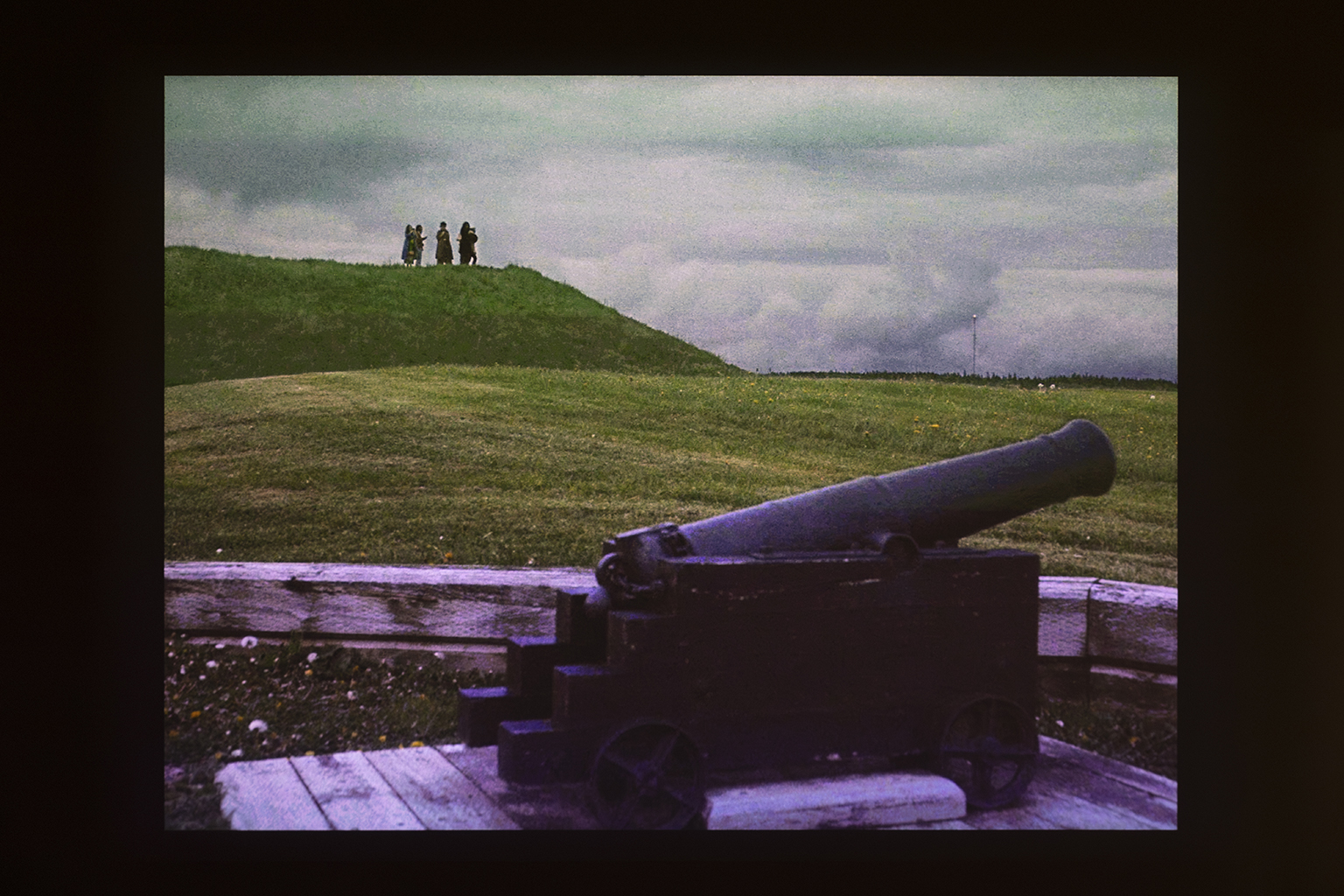 At VOX, the video L’Empremier. Live at Beaubassin (1970) immerses us in the experience of the concert by the group L’Empremier, led by Joan. As a pastiche of the cult film Pink Floyd: Live at Pompeii, the work is shot in the archaeological ruins of Fort Beauséjour, emblematic of confrontations between the British and French in the seventeenth and eighteenth centuries. It features professional Acadian musicians covering classics by Zachary Richard, Beausoleil Broussard, 1755, and Rocambole—pinkfloyded, joandularged. By inserting themselves into the history of film and music, Belliveau and their collaborators explore their own constantly shifting fictional identities.
