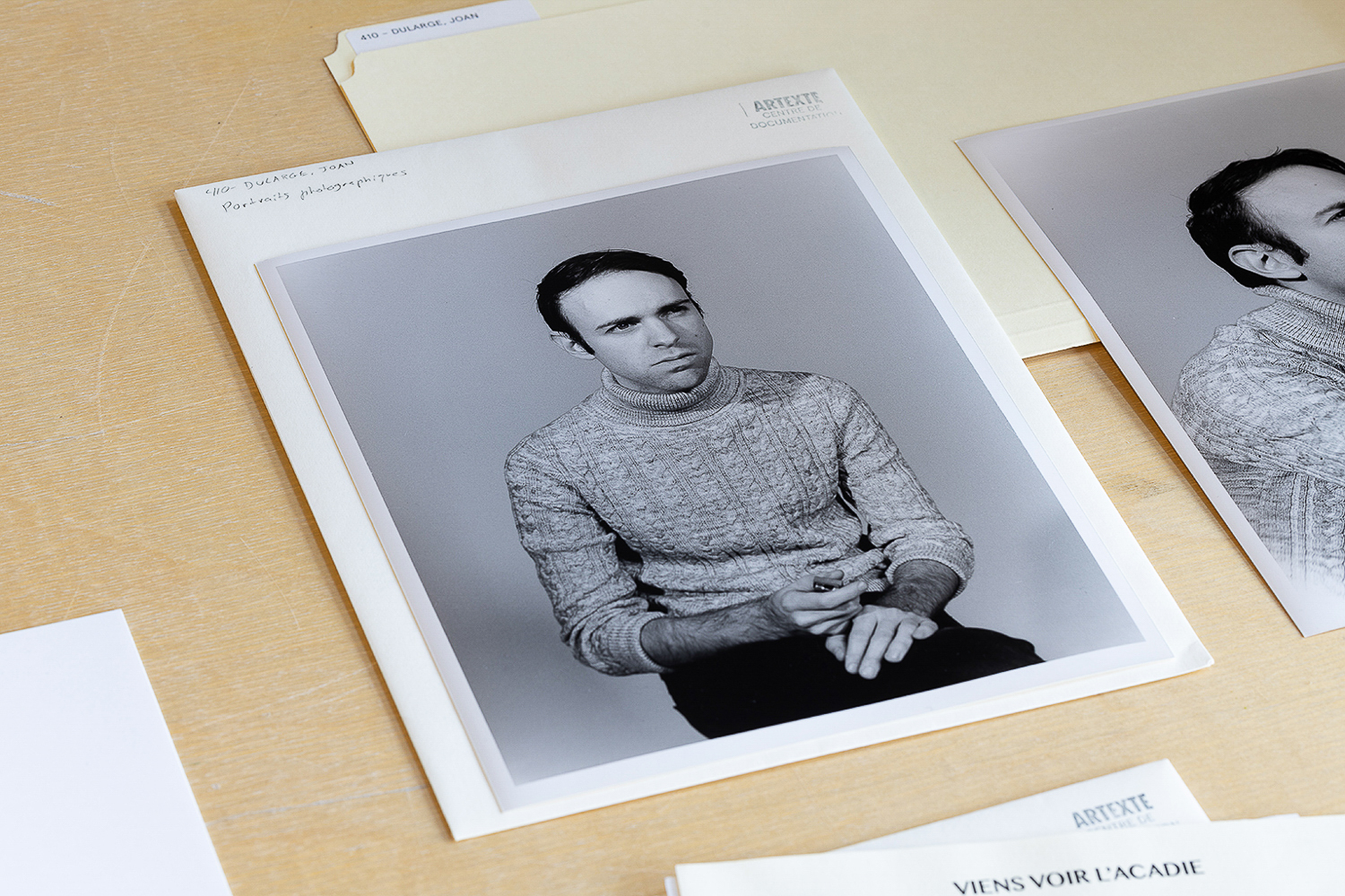 Rémi Belliveau’s art practice is driven by an in-depth exploration of their Acadian culture. Through strategies of borrowing, appropriation, and forgery associated with meticulous historiographic study, a passionate imagination, and a practice firmly rooted in community, Belliveau breathes life into an Acadianness that is caught between franco-descendant and anglo-Maritimer cultures, marked by its state of non-fulfilment, digressiveness, and perpetual in-betweenness; for Belliveau, this also provides a model for transness and queerness. How can taking oneself for someone else help rebuild one’s sense of self? Since 2018, in their works Belliveau has performed as a fictional alter ego named Joan Dularge, a “missing figure” in the history of Acadian rock music.